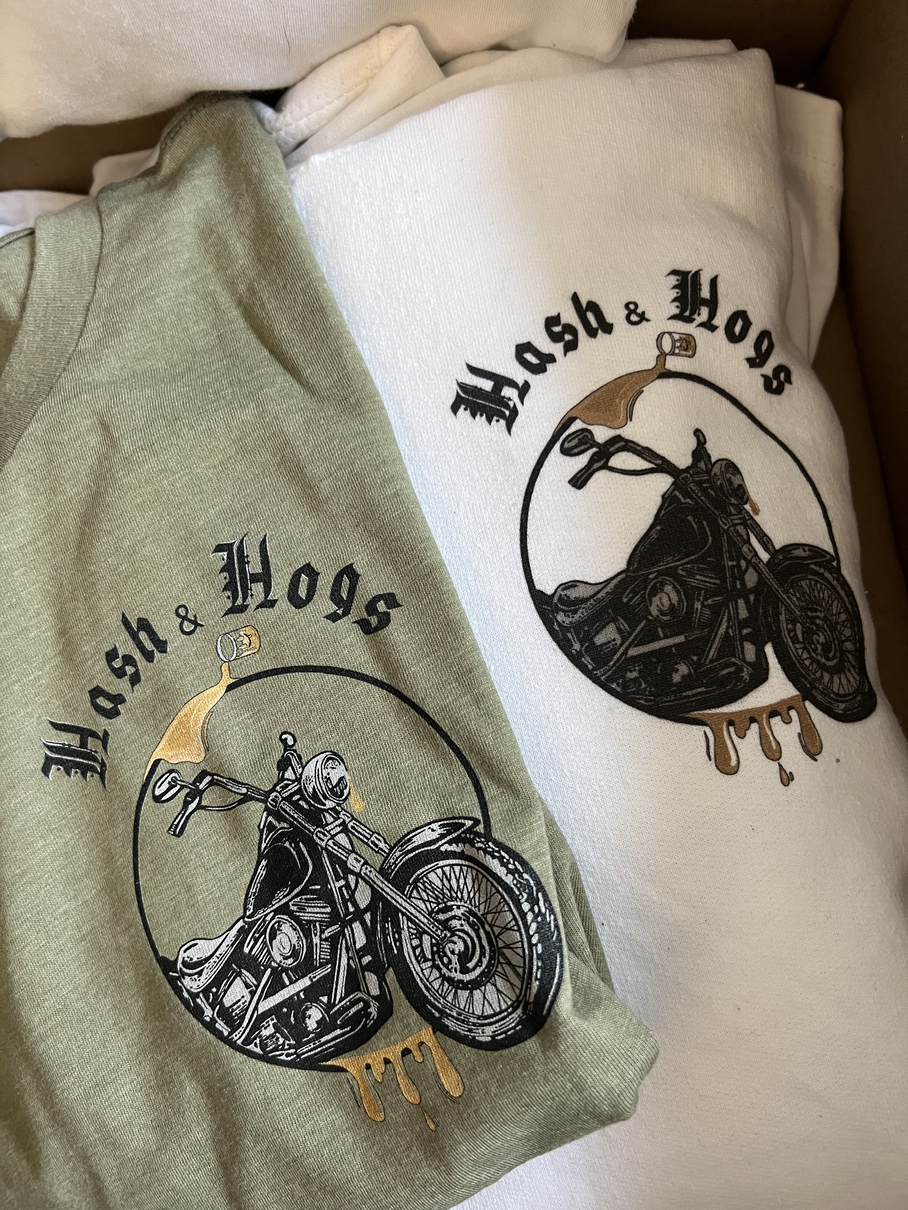 Using a program on the iPad, called procreate, I’m able to create digital artwork that gets printed for the clothing brand, “Hash & Hogs” and any others. This program allows me to create digital works for any type of project.